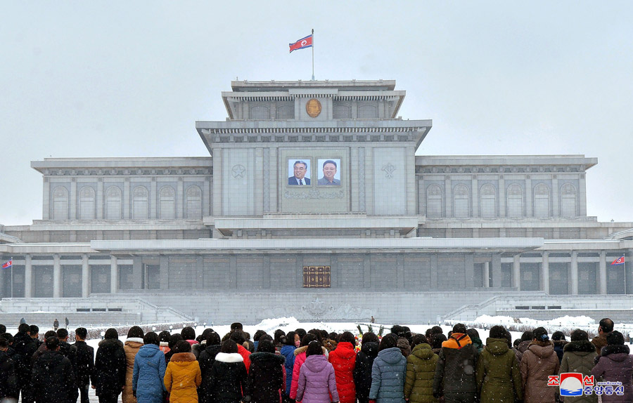 Pchjongjang, 16. února čučche 109 (2020) (KCNA) – U příležitosti významného největšího národního svátku Dne zářící hvězdy pracující lid, sloužící mužstvo, studenti a žáci navštívili bronzové sochy velkého vůdce soudruha Kim Ir Sena a velkého vůdce soudruha Kim Čong Ila na různých místech země a vyjádřili pocit své neskonalé úcty.