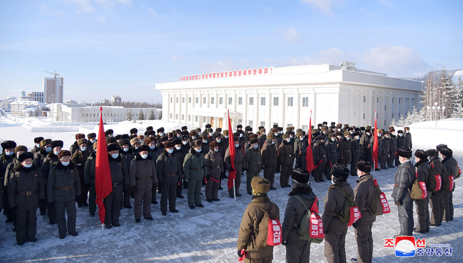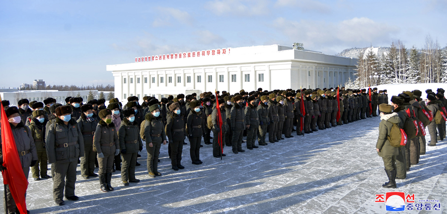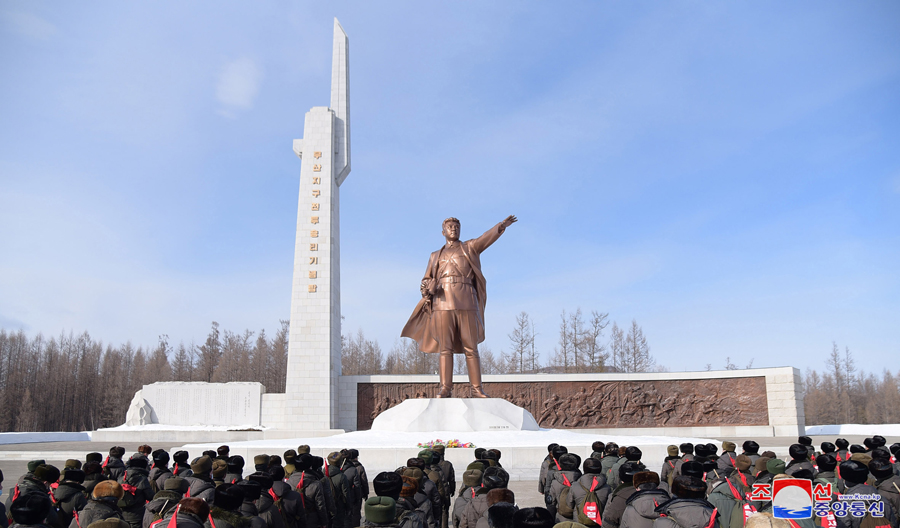 Funkcionáři prezídia Nejvyššího lidového shromáždění zahájili pochod po místech revoluční bojové slávy v oblasti hory Pektu slavnostním shromážděním 23. února na náměstí před bronzovou sochou velkého vůdce soudruha Kim Čong Ila v Samdžijonu.