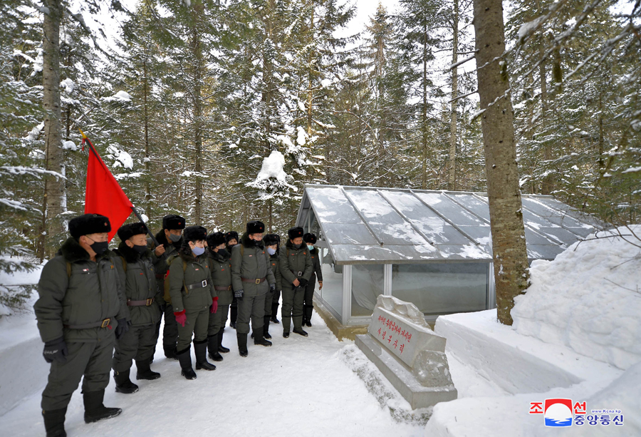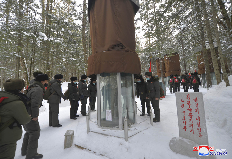 Účastníci pochodu prozkoumali různá místa v táboře a připomněli si revoluční zásluhy velkého vůdce soudruha Kim Ir Sena, který zde nocoval v květnu čučche 28 (1939) a předložil bojový plán postupu v oblasti Tehongdanu během vedení Korejské lidové revoluční armády.