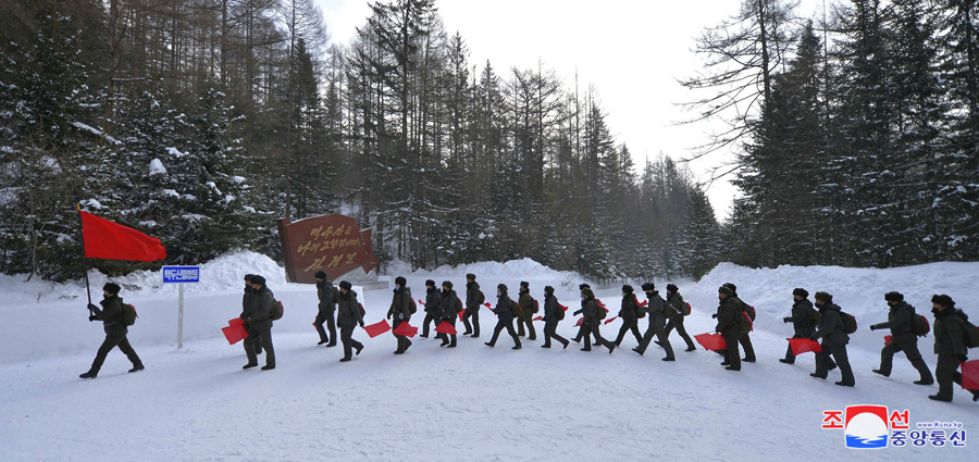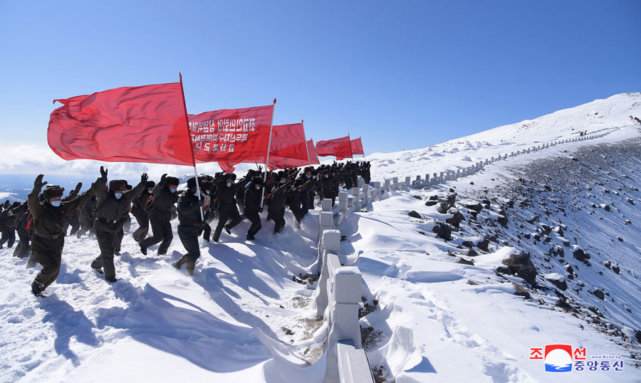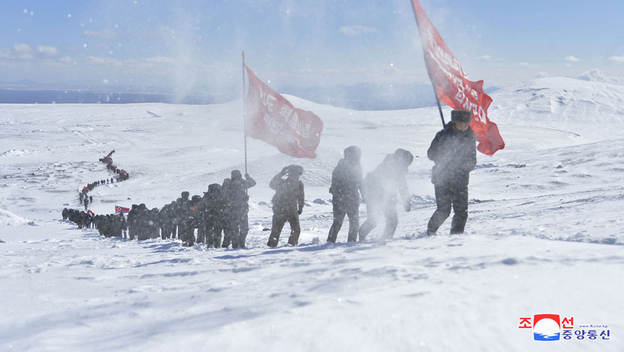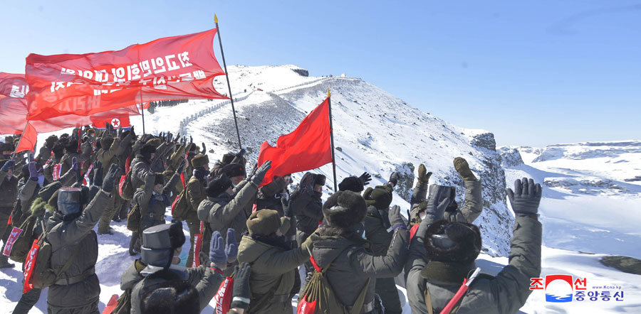Samdžijon, 26. února čučche 109 (2020) (KCNA) – Funkcionáři prezídia Nejvyššího lidového shromáždění na výpravě na revoluční bojiště v oblasti hory Pektu vystoupili 26. února na horu Pektu.