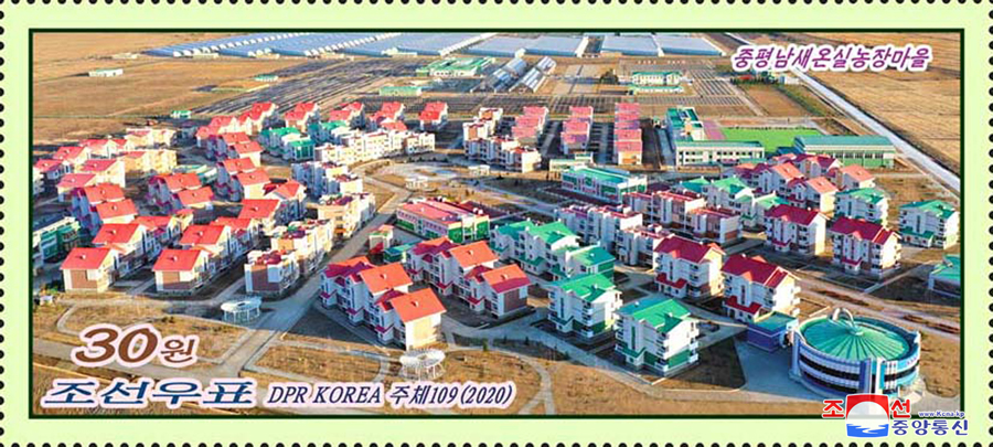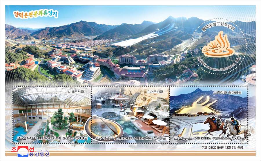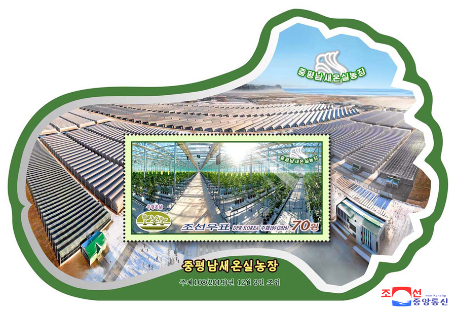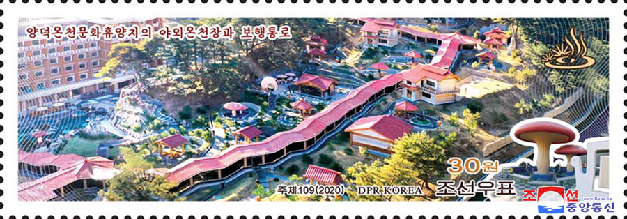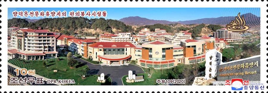 Pchjongjang, 3. března čučche 109 (2020) (KCNA) – Státní známkový výbor vydal známky představující lázeňskou zónu kulturní rekreace Jangdok a skleníkovou zeleninovou farmu Čungpchjong (jednotlivé známky 3 typů, 1 složený celý list a 1 malý celý list).