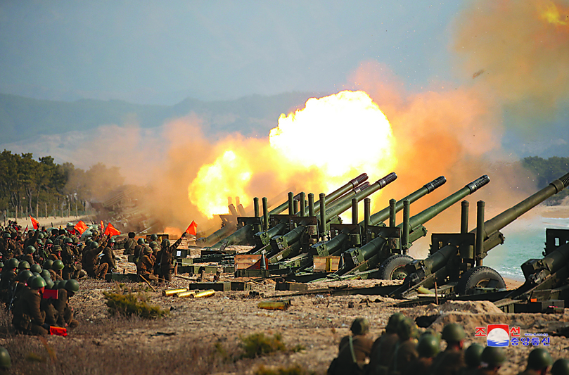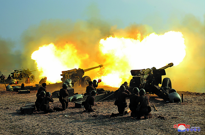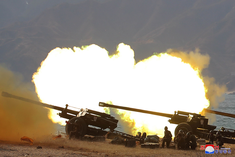 Velitelé a dělostřelci lidové armády po přijetí pokynů váženého soudruha nejvyššího vůdce byli plni neochvějné důvěry, že se není čeho bát, dosud existuje vynikající a moudré vedení váženého soudruha nejvyššího vůdce, který se skvělou vojenskou moudrostí a uměním velení vede výstavbu ozbrojených sil cestou jistého vítězství. Rovněž složili rozhodnou přísahu rozdmýchat plameny převratu v bojovém výcviku pod vysoko vztyčeným heslem „Učení nade vše“ a neustále posilovat svou bojeschopnost, a tak bránit jako pevnost socialistickou vlast, zářící slavným jménem velkého soudruha Kim Čong Una, připraveni zahájit palbu ke zničení nepřátel.