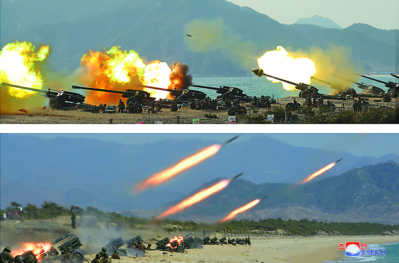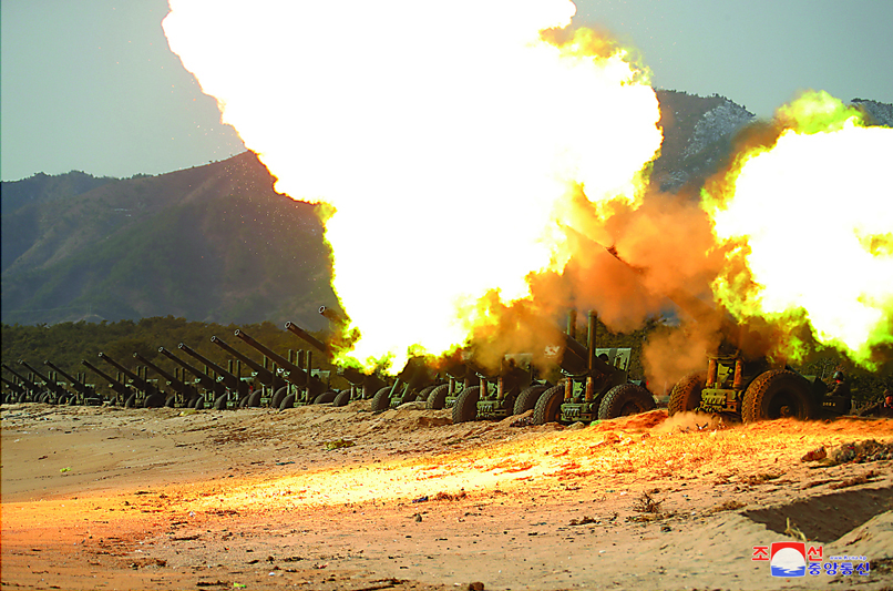 Důstojníci a mužstvo lidové armády byli velmi nadšeni, že se na cvičišti u moře setkali s váženým soudruhem nejvyšším vůdcem, který poskytuje velení armádě na základě velkého strategického plánu otevřít zlatý věk rozvoje revolučních ozbrojených sil a dále zvyšovat obranyschopnost země tak, aby celá armáda přivítala 75. výročí založení slavné Korejské strany práce skvělým úspěchem zahájení velkého skoku ve zvýšení bojeschopnosti v plamenech uskutečnění revoluce ve výcviku. Byli naplněni ohromnou bojovou vůlí a soutěživou vášní, aby do cílů stanovených stranou nasypali sprchu střel se skvělým dělostřeleckým uměním získaným pod vedením strany.