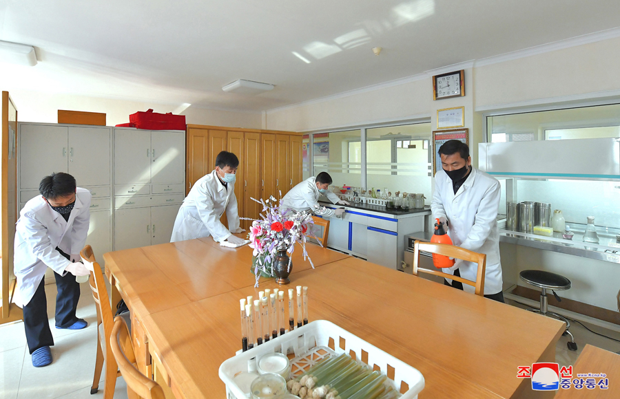 Hygienické a protiepidemické stanice a orgány veřejného zdravotnictví v provincii Jižní Hwanghe samy vybudovaly výrobní základnu antiseptických léků a uspokojily potřebu a rovněž přijímají opatření k odpovídajícímu poskytování léků a zdravotnického materiálu, včetně ochranných oděvů, ochranných brýlí a přezůvek.