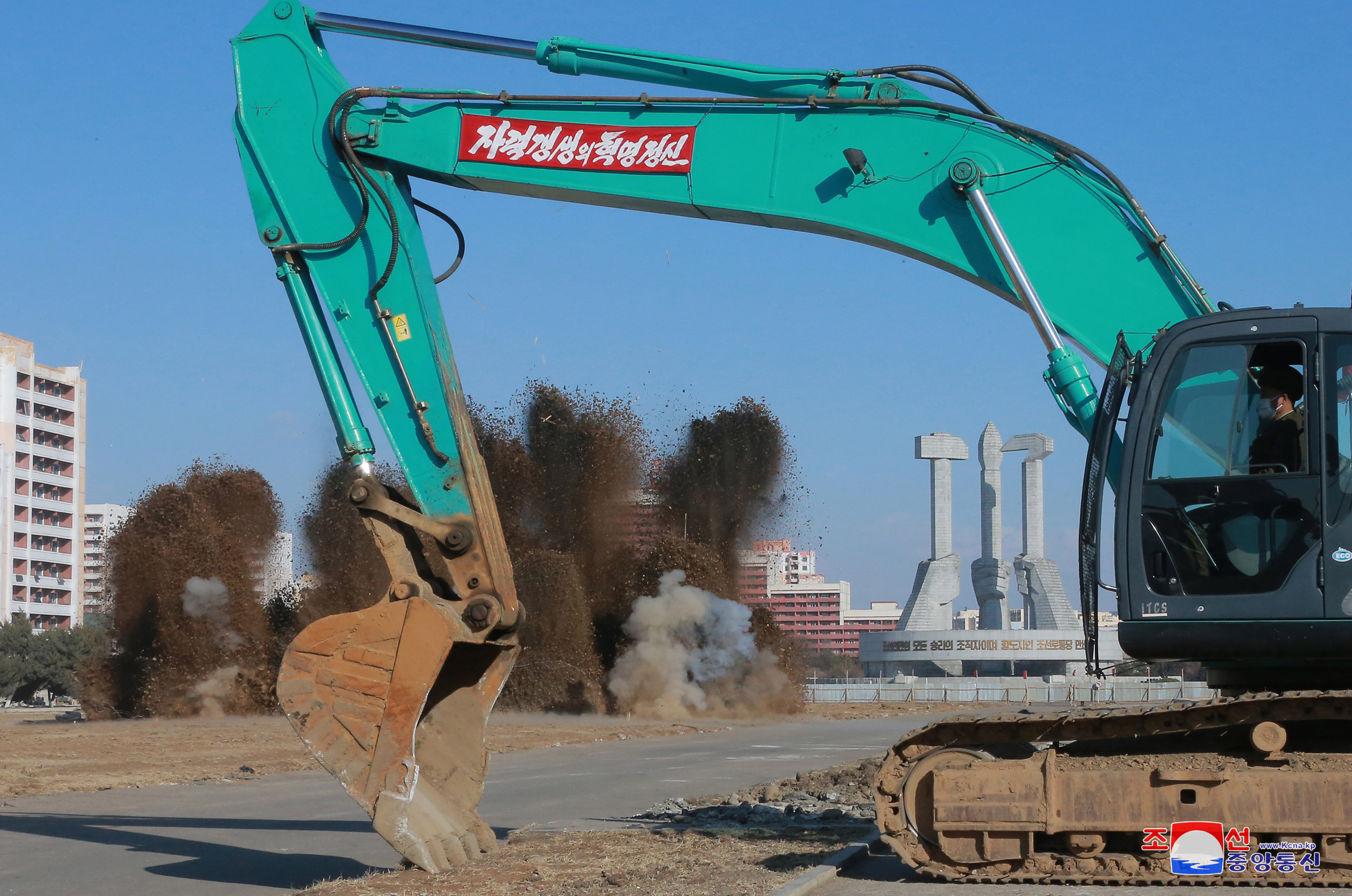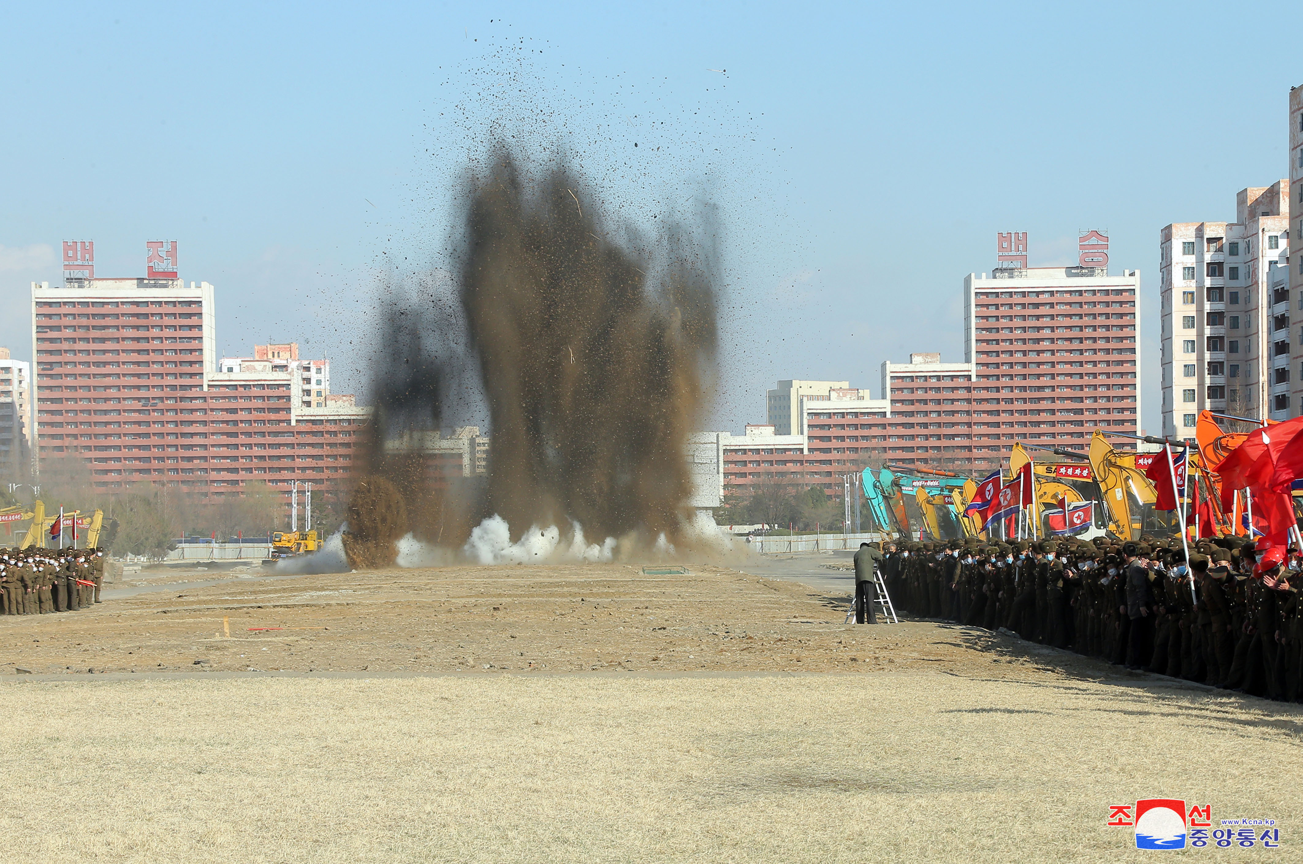 Vážený nejvyšší vůdce soudruh Kim Čong Un na počest slavnostního zahájení výstavby pchjongjangské všeobecné nemocnice osobně jako první rozryl zemi a stiskl tlačítko elektrického odpalovače. V tu chvíli se rozlehl ohlušující výbuch první exploze a oznámil zahájení výstavby pchjongjangské všeobecné nemocnice.
