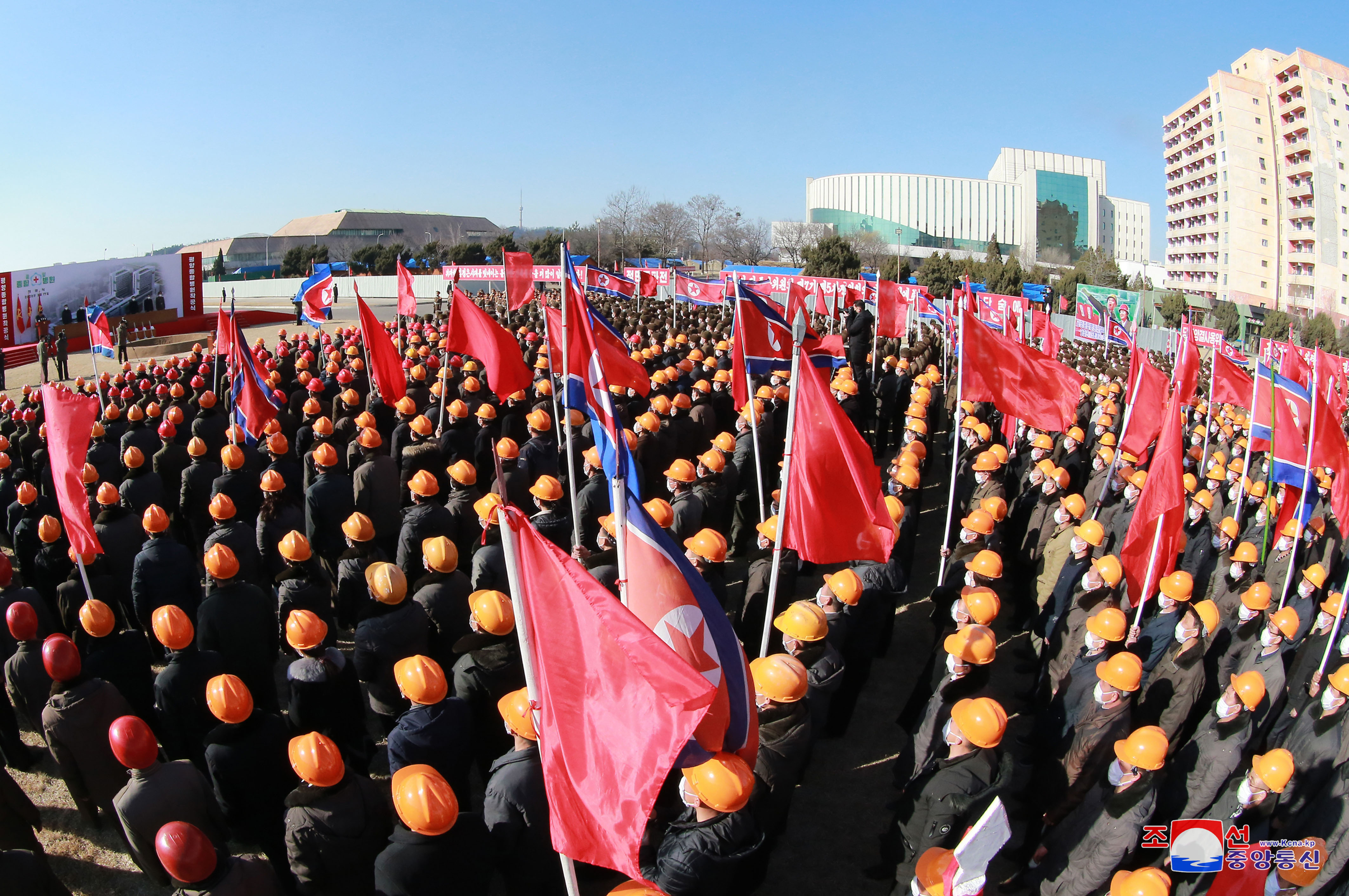 Když vážený nejvyšší vůdce soudruh Kim Čong Un dorazil na místo slavnostního zahájení stavby, všichni účastníci začali bouřlivě provolávat „Hurá!“ na počest váženého soudruha nejvyššího vůdce, který s horlivou láskou k lidu vyvíjí neustálé úsilí a otevírá širokou cestu nového pokroku socialismu našeho typu.