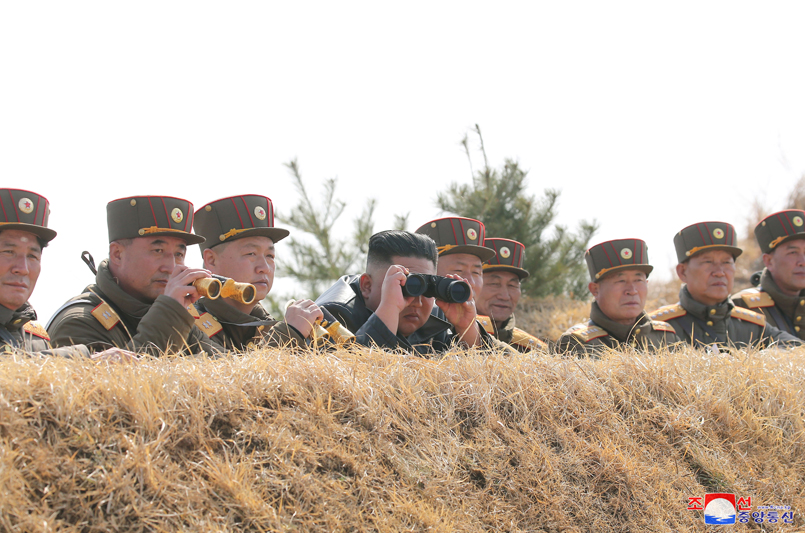 Předseda Korejské strany práce, předseda Komise pro státní záležitosti Korejské lidově demokratické republiky, vrchní velitel ozbrojených sil KLDR, nejvyšší vůdce naší strany, státu a ozbrojených sil soudruh Kim Čong Un vedl 20. března dělostřeleckou soutěž velkých kombinovaných jednotek Korejské lidové armády na západní frontě.