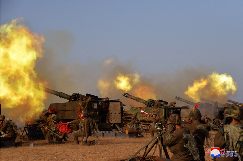 Pchjongjang, 21. března čučche 109 (2020) (KCNA) – Uprostřed vysoké bojové morálky, kterou je prostoupena celá armáda díky vynikajícímu bojovému umění a schopnostem váženého nejvyššího vůdce soudruha Kim Čong Una, stoupá neporazitelný bojový duch jako nikdy předtím a planou plameny dokončení příprav na vojenské operace, další cvičení dělostřelby otřáslo nebem a zemí jako součást úsilí o pokračování revoluce ve výcviku.
