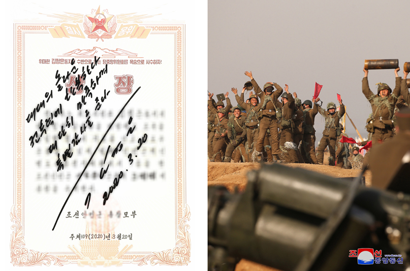 Velice spokojen s bojovou připraveností 3. sboru vážený soudruh nejvyšší vůdce napsal na čestný diplom vzorných dělostřelců, udělený dělostřeleckému praporu 3. sboru za pozoruhodné výsledky v soutěži: „Obdivuji úžasnou bojeschopnost praporu. S pocitem naprosté spokojenosti mu vyjadřuji mimořádné poděkování. Kim Čong Un, 20. března 2020.“