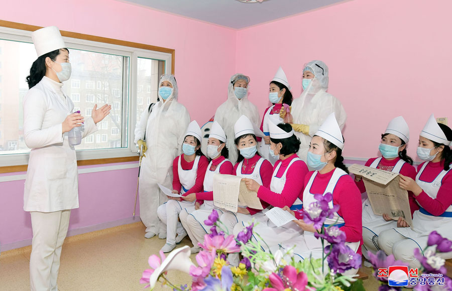 Zdravotníci z okresních nemocnic Jongwang a Hočchon v provincii Hamgjong a v okrese Čunggang provincie Čagang společně s protiepidemickou prací pečují o životní podmínky osob v karanténě. Zvláštní pozornost věnovali zejména těhotným ženám v domácí karanténě a poskytli jim výživné potraviny, které potřebují po porodu.