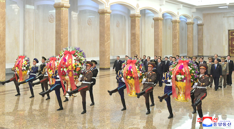 Byly položeny květinové koše jménem Ústředního výboru Korejské strany  práce, Komise pro státní záležitosti Korejské lidově demokratické republiky, prezídia Nejvyššího lidového shromáždění KLDR a vlády KLDR.