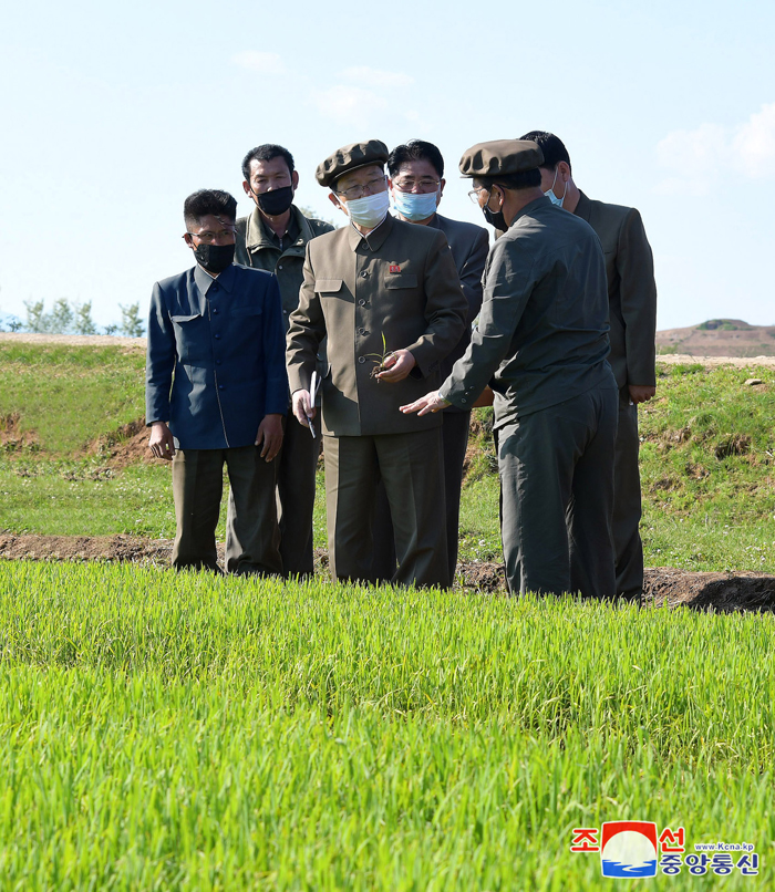 Pchjongjang, 31. května čučche 109 (2020) (KCNA) – Člen politbyra Ústředního výboru Korejské strany práce, člen Komise pro státní záležitosti Korejské lidově demokratické republiky a předseda vlády soudruh Kim Če Rjong se na místě seznámil se stavem zavlažovacího kanálu na planině Miru a výsadbou sazenic rýže v okresech Koksan a Singje v provincii Severní Hwanghe.