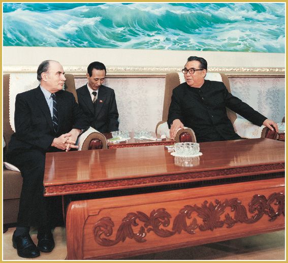 Mitterrand povedal súdruhovi Kim Ir Senovi, že od nikoho nepočul také cenné poznámky, ktoré by jasne analyzovali a odhaľovali mnohé problémy. Mitterrand bol v máji toho istého roku zvolený za prezidenta Francúzska a na samite G7 povedal, že Kim Ir Sen je vynikajúcim vodcom súčasnej doby.