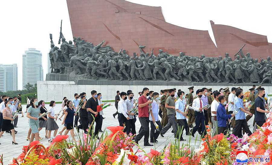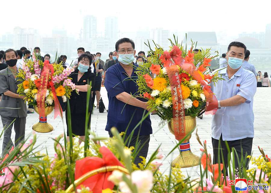 Před bronzové sochy velkého vůdce a velkého generála na vrchu Mansude byly položeny květinové koše jménem strany, orgánů vlády a ozbrojených sil, společenských organizací, ministerstev, ústředních institucí, jednotek Korejské lidové armády a sil Veřejné bezpečnosti, institucí, továren a podniků všech úrovní města Pchjongjangu a dalších.