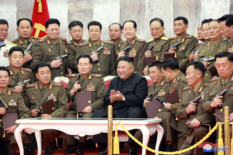 Pchjongjang, 27. července čučche 109 (2020) (KCNA) – Předseda Korejské strany práce, předseda Komise pro státní záležitosti Korejské lidově demokratické republiky a vrchní velitel ozbrojených sil KLDR, nejvyšší vůdce naší strany, státu a armády soudruh Kim Čong Un u příležitosti 67. výročí vítězství ve Velké vlastenecké osvobozenecké válce předal pamětní pistole „Pektusan“ vedoucím velícím důstojníkům ozbrojených sil republiky.