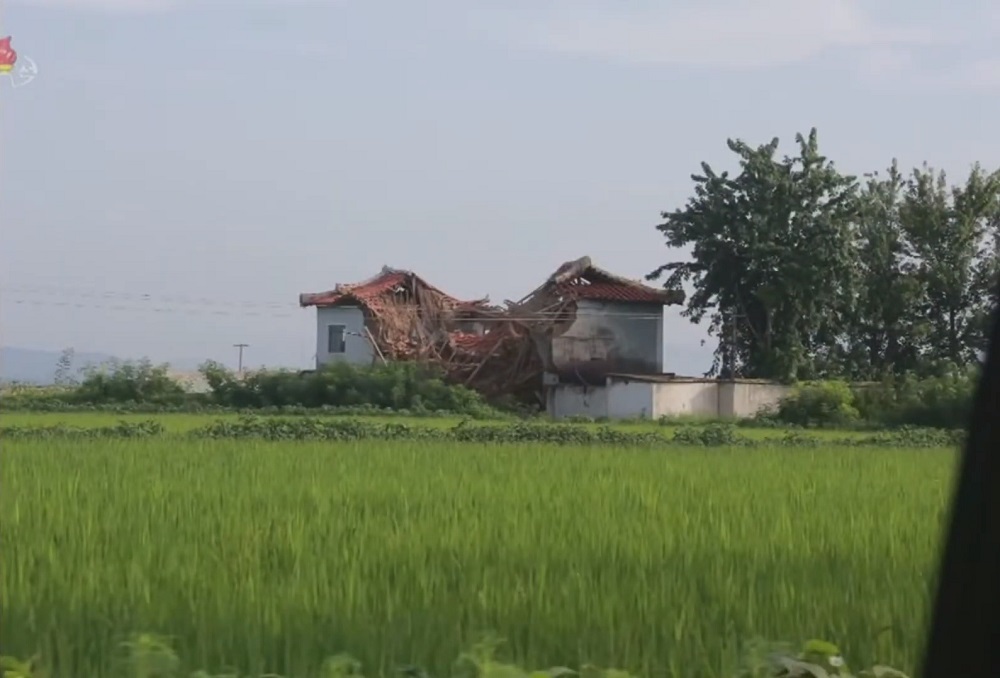 V důsledku několika po sobě následujících dnů přívalových dešťů a bouřek, které byly nedávno způsobeny sezónní deštivou frontou, se protrhla hráz vodního toku v oblasti Tečchong-ri v okrese Unpcha a bylo zaplaveno více než 730 jednopodlažních domů a více než 600 čongbo (přibližně hektarů, pozn. překl.) rýžových polí a zničeno 179 obytných domů.
