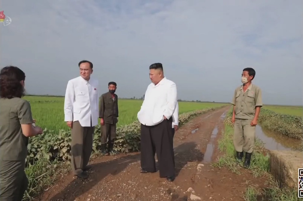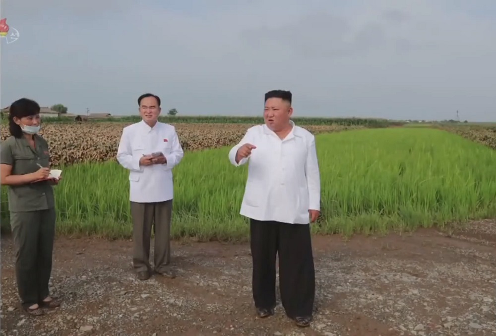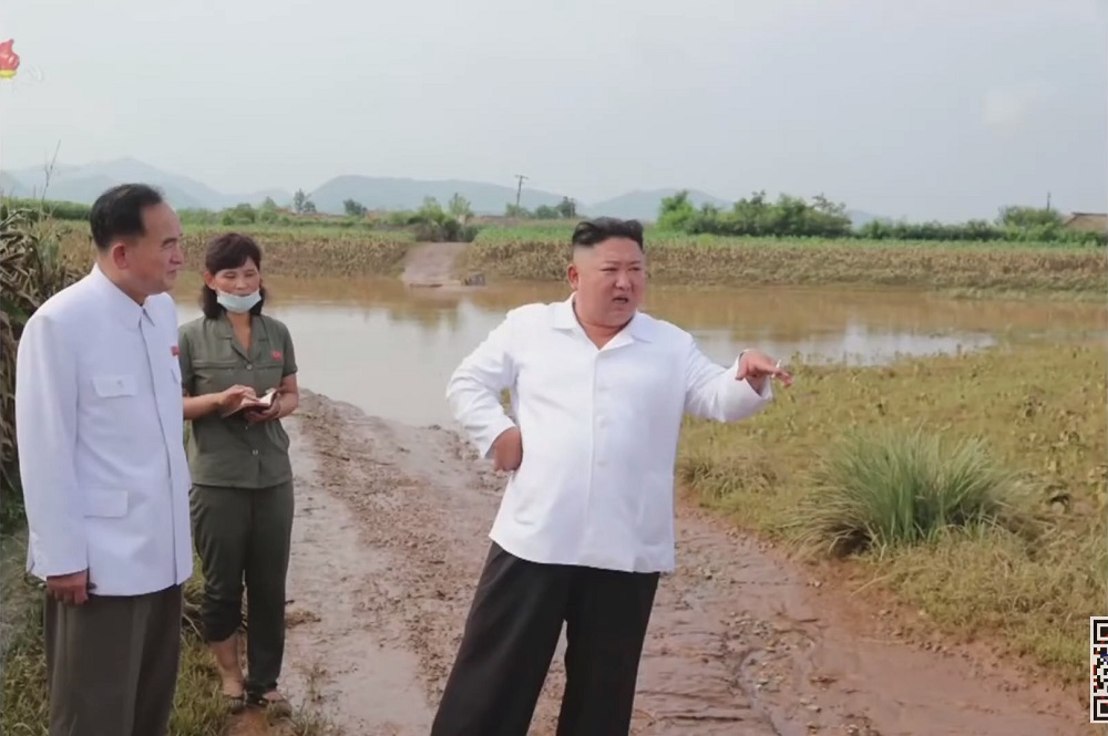 Pchjongjang, 7. srpna čučche 109 (2020) – Předseda Korejské strany práce, předseda Komise pro státní záležitosti Korejské lidově demokratické republiky a vrchní velitel ozbrojených sil KLDR, nejvyšší vůdce naší strany, státu a armády soudruh Kim Čong Un se na místě seznámil se situací povodňových škod v oblasti obce Tečchong-ri okresu Unpcha v provincii Severní Hwanghe.