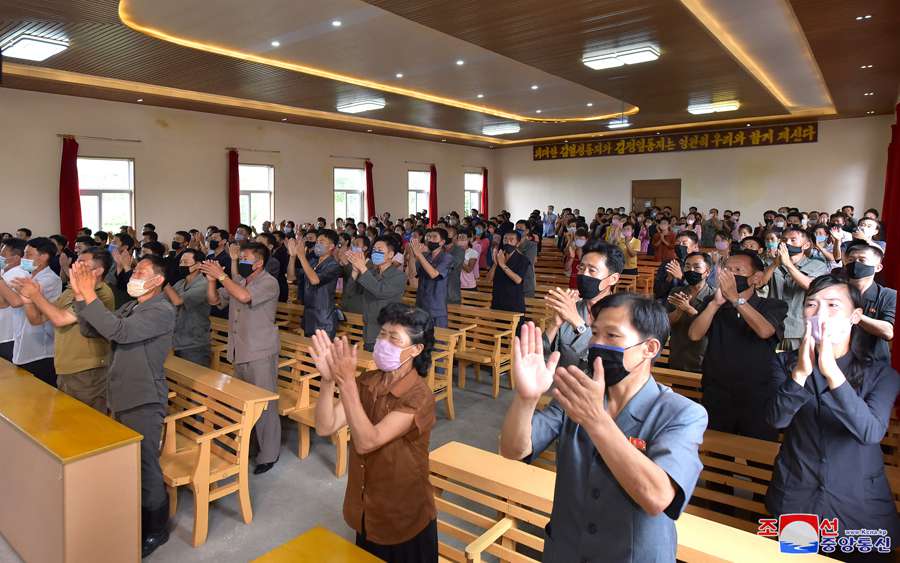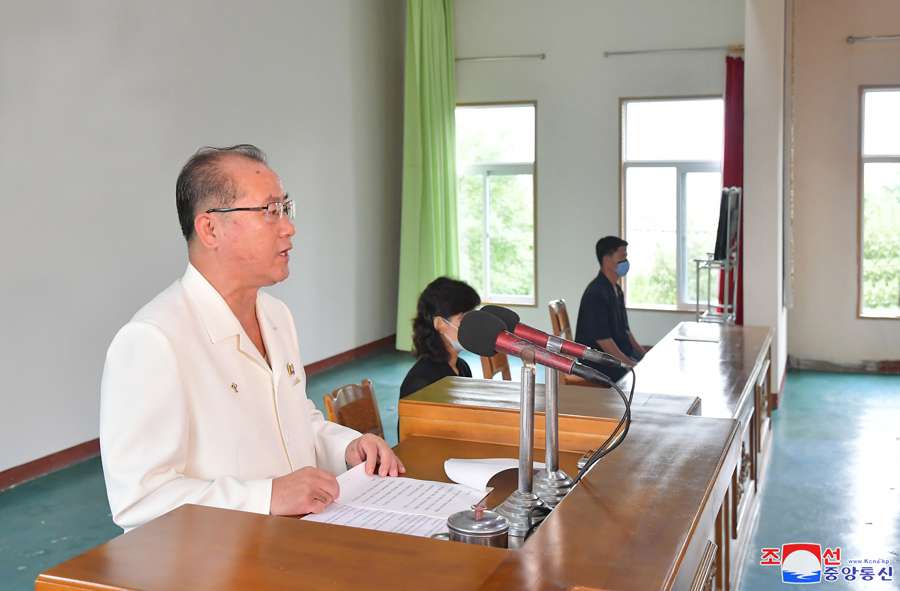 Z pověření váženého nejvyššího vůdce soudruha Kim Čong Una přednesl projev člen politbyra Ústředního výboru Korejské strany práce a místopředseda Ústředního výboru strany soudruh Ri Il Hwan. Řekl, že vážený soudruh nejvyšší vůdce, který přijal zprávu o záplavě mnoha obytných budov v okrese Unpcha, byl první, kdo přijel do postižené oblasti, a s bolestí v srdci z neštěstí obyvatel, kteří ztratili své domovy a majetek, se postaral o to, aby se život obyvatel co nejdříve stabilizoval.