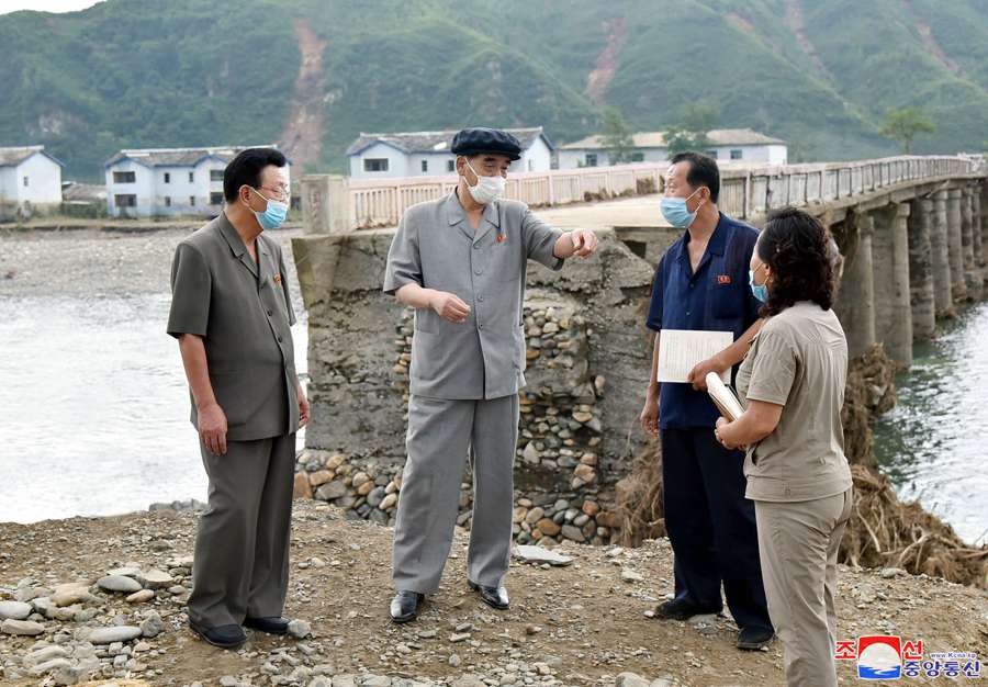 Pchjongjang, 19. srpna čučche 109 (2020) (KCNA) – Člen prezídia politbyra Ústředního výboru Korejské strany práce, místopředseda Komise pro státní záležitosti KLDR a místopředseda Ústředního výboru strany soudruh Pak Pong Džu se na místě seznámil s následky povodní v okresech Kimhwa, Čcholwon a Pchjonggang v provincii Kangwon.