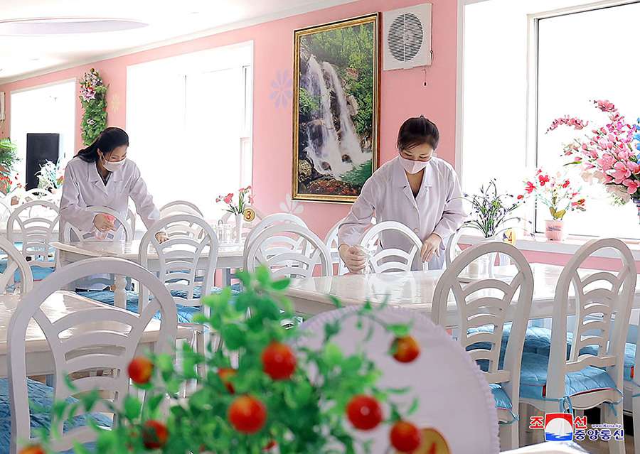 Pchjongjang, 29. srpna čučche 109 (2020) (KCNA) – V ubytovně Přádelny hedvábí Kim Čong Suk v Pchjongjangu se provádí dezinfekce v souladu s požadavky protiepidemických pravidel.