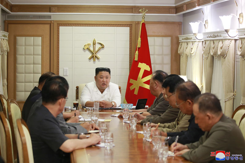 Pchjongjang, 6. září čučche 109 (2020) (KCNA) – Předseda Korejské strany práce, předseda Komise pro státní záležitosti Korejské lidově demokratické republiky, vrchní velitel ozbrojených sil KLDR, nejvyšší vůdce naší strany, státu a ozbrojených sil soudruh Kim Čong Un svolal a vedl v zasažené oblasti rozšířené zasedání výkonné politické rady Ústředního výboru strany s cílem zorganizovat kampaň k odstranění následků přírodní katastrofy způsobené tajfunem číslo 9 v provinciích Jižní a Severní Hamgjong.