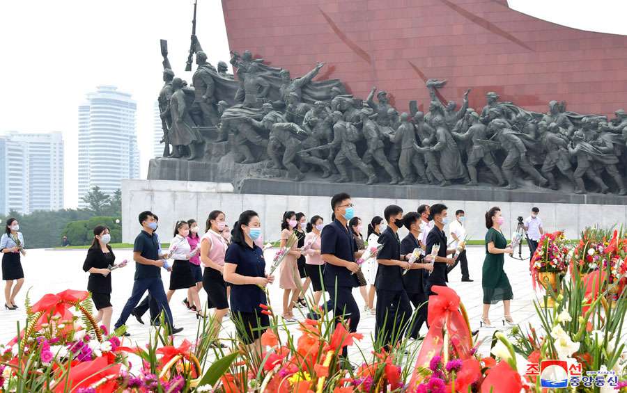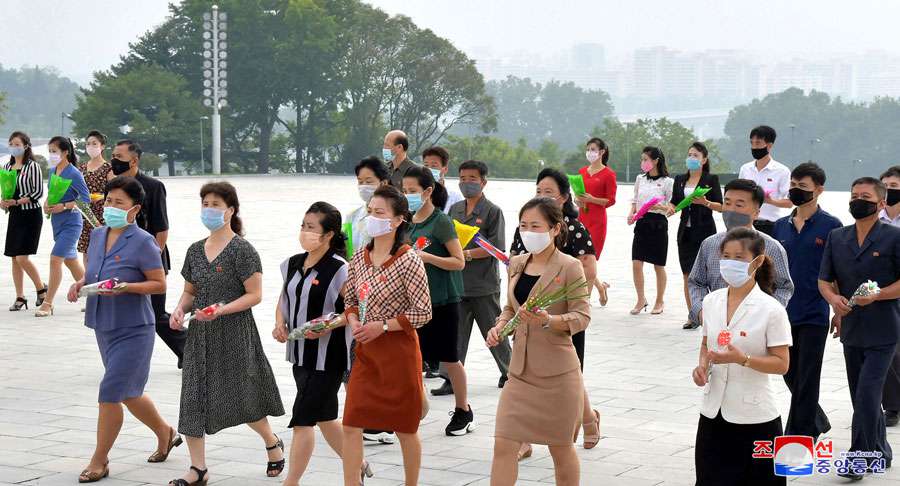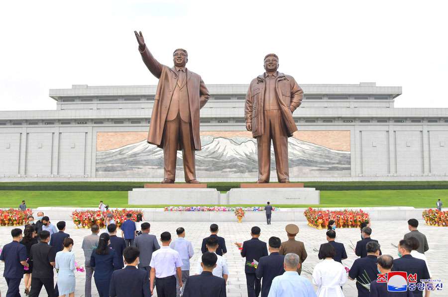 Pchjongjang, 9. září čučche 109 (2020) (KCNA) – U příležitosti 72. výročí založení Korejské lidově demokratické republiky funkcionáři, pracující lid a sloužící mužstvo lidové armády položili květinové koše k bronzovým sochám velkého vůdce soudruha Kim Ir Sena a velkého vůdce soudruha Kim Čong Ila.
