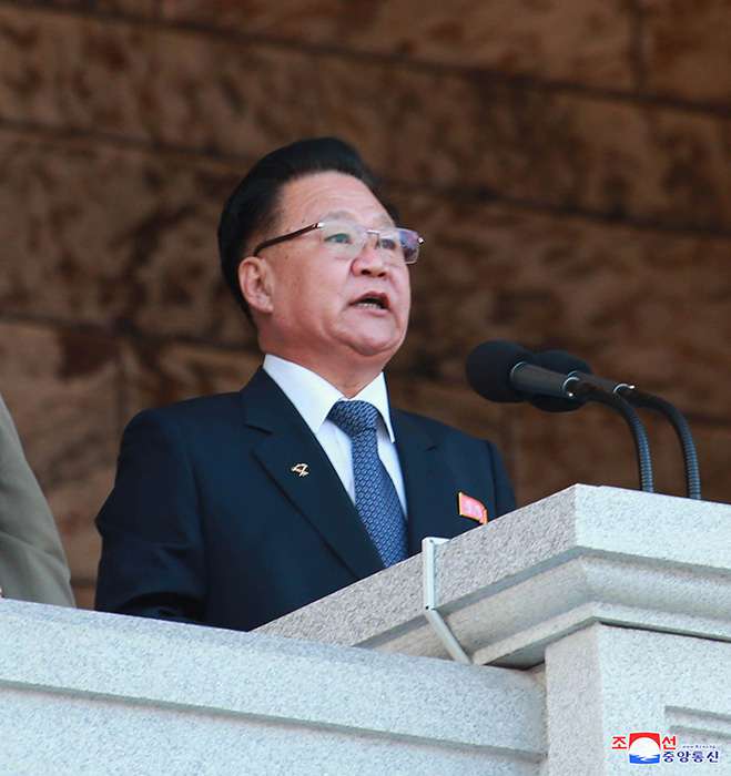 Blahopřejnou zprávu Ústředního výboru KSP, Ústřední vojenské komise KSP, Komise pro státní záležitosti Korejské lidově demokratické republiky, předsednictva Nejvyššího lidového shromáždění KLDR a vlády KLDR přečetl místopředseda ústředního výboru KSP soudruh Ri Il Hwan.
