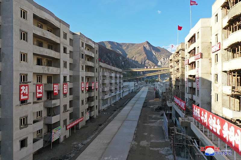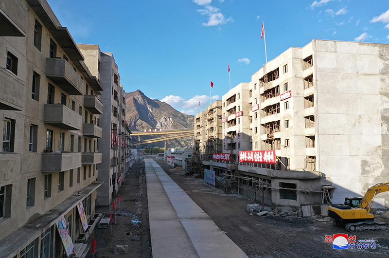 Vážený soudruh nejvyšší vůdce pravil, že nyní se nové domy staví pouze tehdy, když jsou staré zničeny přírodními katastrofami, a dodal, že místní výstavba by se neměla dělat tímto způsobem, nýbrž cíle místní výstavby by měly být plánovitě stanoveny a dlouhodobě prováděny. Rozvinul dalekosáhlý plán, jak proměnit oblast Komdok, přední velkokapacitní základnu těžby nerostných surovin v zemi, na příkladné horské město a hornické město po vzoru města Samdžijon odstraněním staleté zaostalosti obcí Tehung, Komdok a Rjongjang a výstavbou moderních obytných domů vyhovujících požadavkům nového století. Dodal, že současná obnova po poškození by měla být první fází projektu, dokončenou s veškerým úsilím během 80denní kampaně, a zdůraznil svůj závazek vybudovat v druhé fázi projektu 25 tisíc nových obytných domů v těžebním komplexu Komdok, dole hrdiné mládeže Tehung a dole Rjongjang během období provádění pětiletého plánu stanoveného na 8. sjezdu strany.