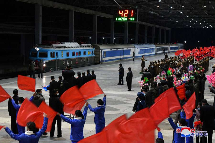 Vlaky s vlastenci a předními aktivisty naší strany, triumfálně se navracejícími, dorazily na nádraží v Pchjongjangu. Srdečně je přivítali místopředsedové Ústředního výboru Korejské strany práce soudruzi Pak Tche Dok a Kim Jong Čchol, předseda městského výboru Korejské strany práce v Pchjongjangu soudruh Kim Jong Hwan, kádry Ústředního výboru strany a funkcionáři města.