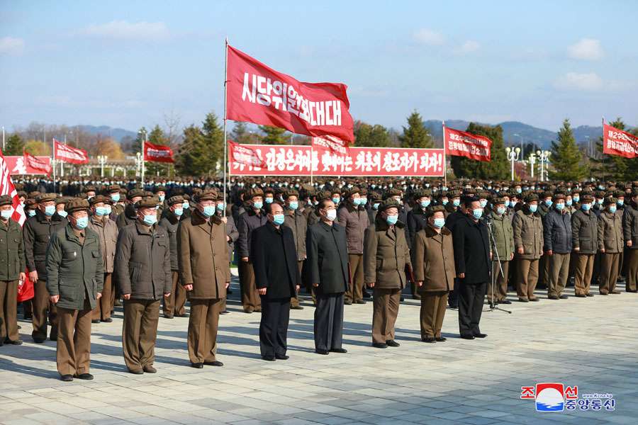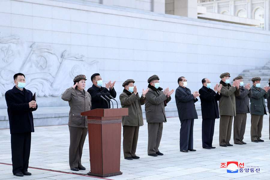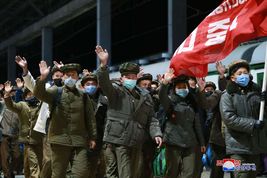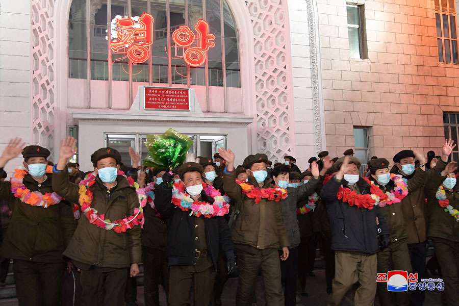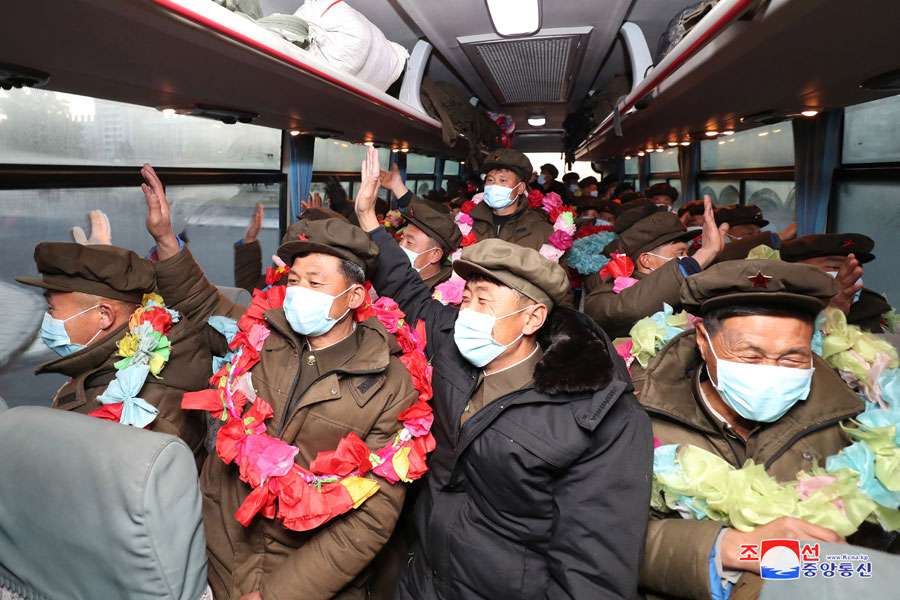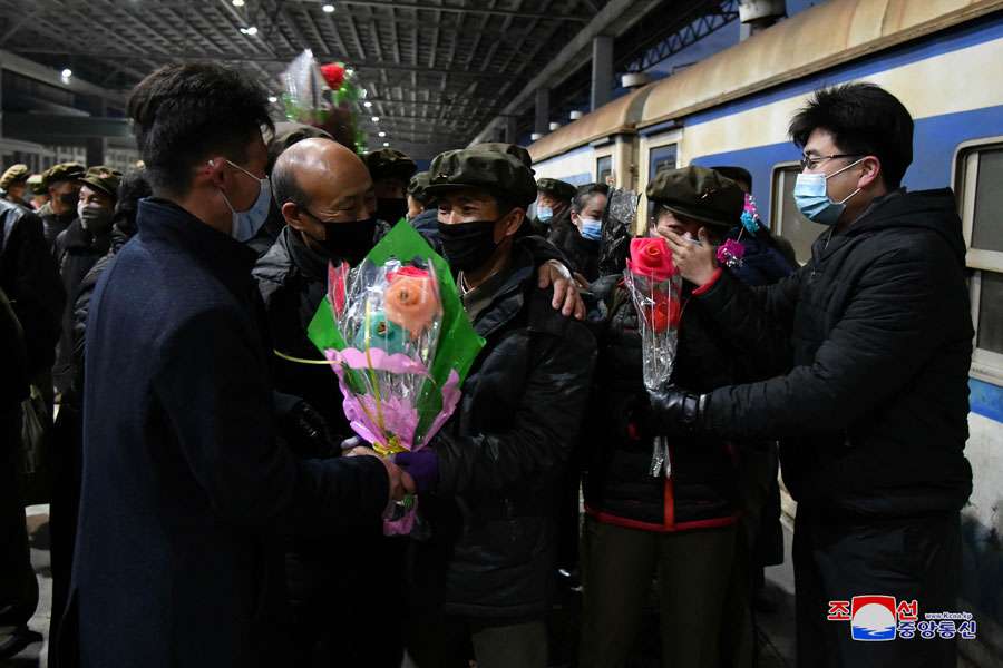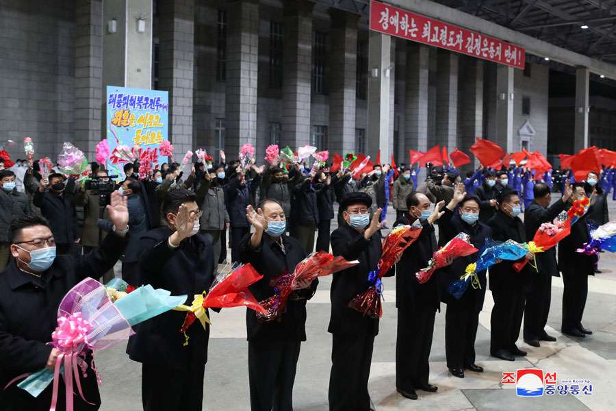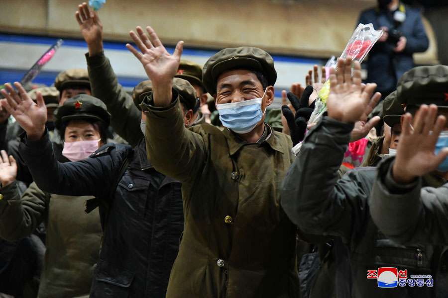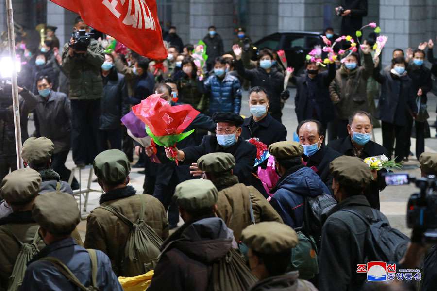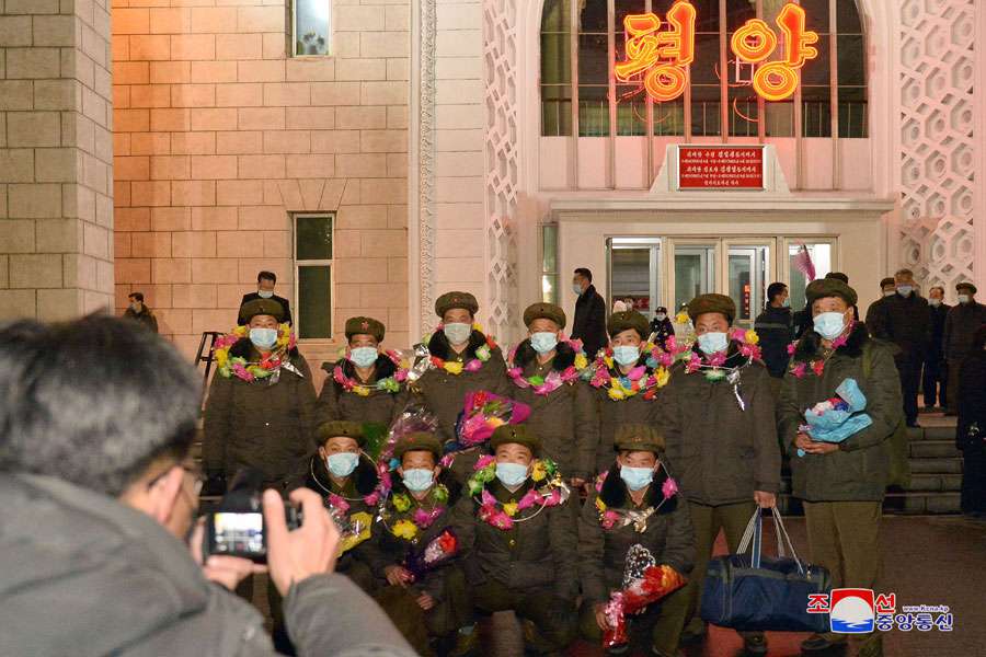 Pchjongjang, 21. listopadu čučche 109 (2020) (KCNA) – Bojovníci divizí vybraných členů strany z hlavního města, kteří vytvořili hrdinné a legendární příběhy v nejobtížnějších bojových oblastech při odstraňování následků škod v provinciích Jižní a Severní Hamgjong a dosáhli hrdého vítězství, se 20. listopadu vrátili do milovaného Pchjongjangu.