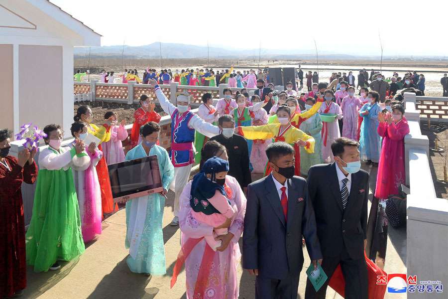 V bezvadně postavených nových vesnicích se konala shromáždění k předání nových obytných budov. Zúčastnili se jich funkcionáři provincií Severní a Jižní Hamgjong a obyvatelé postižených oblastí. Řečníci srdečně poblahopřáli obyvatelům k novým domovům. Uvedli, že vážený soudruh nejvyšší vůdce, který zanechal stopy obětavosti a úsilí na větrném východním pobřeží, kde ještě nebyly odstraněny následky tajfunu, přijal veškerá opatření k výstavbě domů pro obyvatele postižených oblastí. Konstatovali, že nikde na světě nejsou tak šťastní lidé jako náš lid, který má skvělého otce, a s duší horoucí věrnosti obyvatel postižených oblastí a všeho lidu provincie provolali nejvyšší slávu a vyjádřili nejvřelejší díky váženému nejvyššímu vůdci soudruhu Kim Čong Unovi.