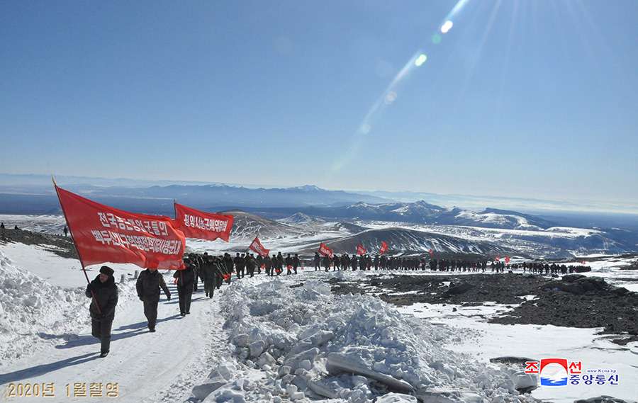 Pchjongjang, 3. prosince čučche 109 (2020) (KCNA) – Uplynul rok od chvíle, kdy vážený nejvyšší vůdce soudruh Kim Čong Un provedl historickou jízdu na koni na místa revoluční a bojové slávy v oblasti hory Pektu (Pektusan). Během této doby vystoupilo na horu Pektu více než 84 tisíc funkcionářů, pracujících, vojáků lidové armády a studentů z více než 1900 jednotek.