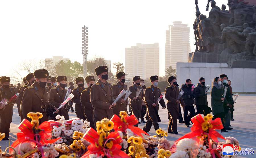 Před bronzové sochy a portréty velkého vůdce a velkého generála v různých částech hlavního města včetně Kim Ir Senovy univerzity, Ministerstva veřejné bezpečnosti a Uměleckého studia Mansude byly položeny květinové koše jménem jednotek Korejské lidové armády a Sil veřejné bezpečnosti, institucí a podniků.