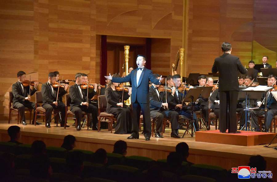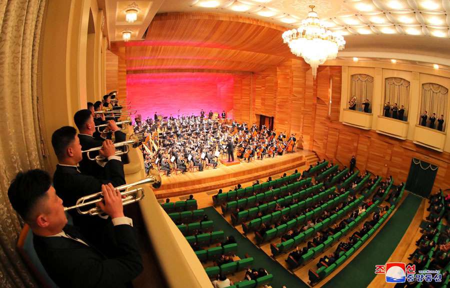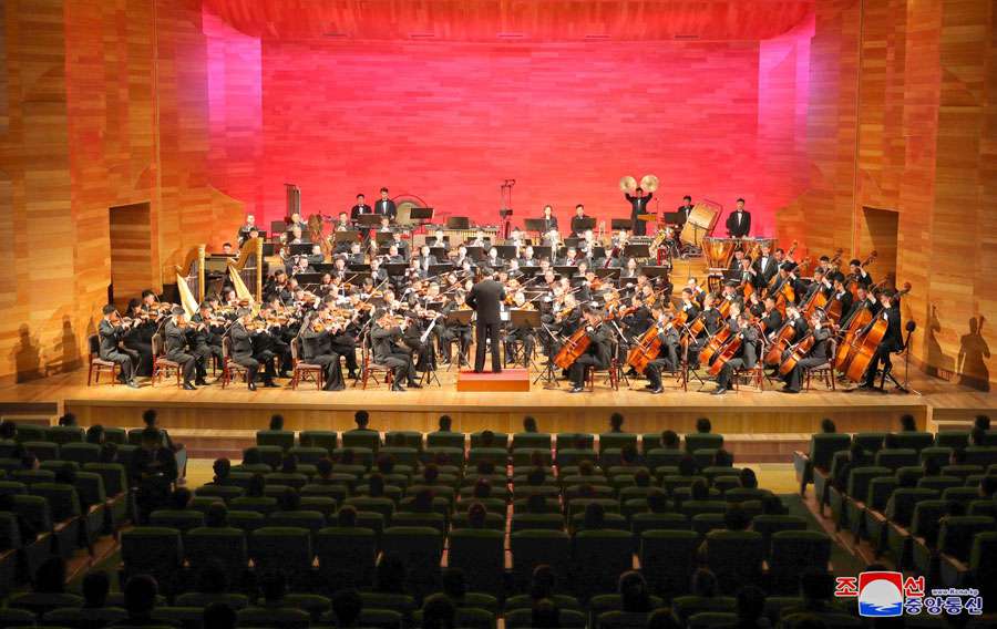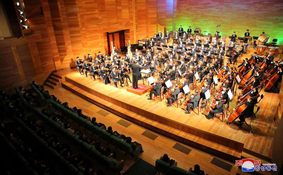 Koncert, který začal orchestrální předehrou „Óda na soudruha Kim Čong Ila“, zahrnoval různá vystoupení, včetně první věty „Rodný dům pokrytý sněhem“ ze symfonie „Vůdce nesmrtelný jako slunce“ a orchestrálních skladeb „Klapot kopyt na Pektusanu“ a „Generál – osud Koreje“.
