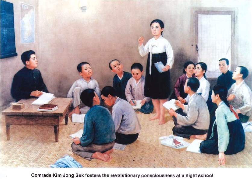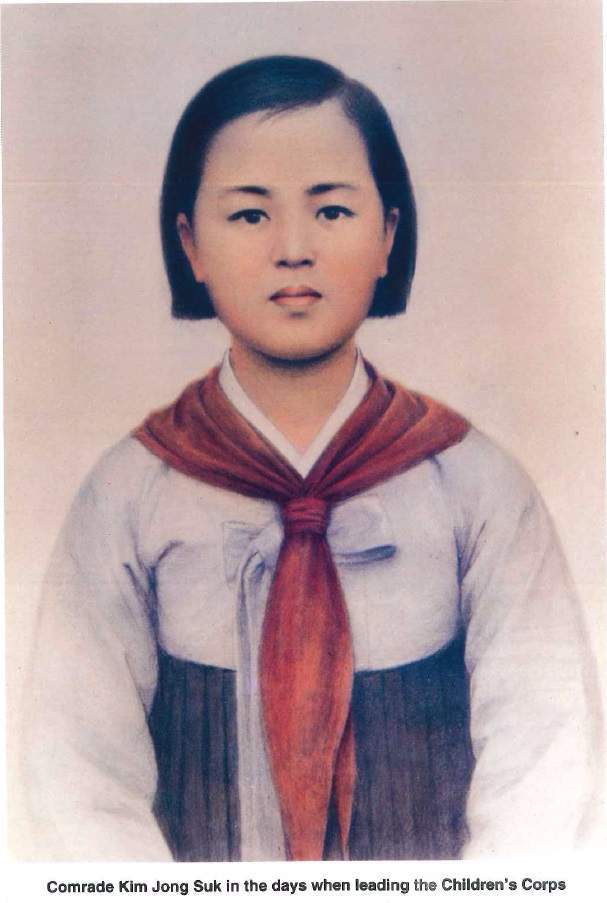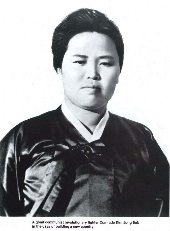 Soudružka Kim Čong Suk, revoluční vojačka nejvěrnější velkému vůdci soudruhu Kim Ir Senovi, velká komunistická revoluční bojovnice a matka revoluce, se narodila 24. 12. 1917 ve městě Herjongu v provincii Severní Hamgjong ve vlastenecké a revoluční rodině. Na jaře 1922 rodina odešla do Číny v naději na lepší živobytí. V dětském věku soudružka Kim Čong Suk přišla o starší sestru a otce. Jejího bratra zabili japonští okupanti. Chudá a utlačená začala chápat rozpory vykořisťovatelské společnosti.