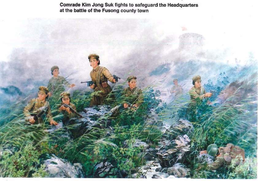 Později vedla soudružka Kim Čong Suk práci KSMK v partyzánské základně Sandaowan, kde se v březnu 1935 setkala se soudruhem Kim Ir Senem. V dubnu 1936 byla přidělena k hlavní jednotce Korejské lidové revoluční armády (KLRA) pod osobním vedením velkého vůdce. Zajistila vítězství jednotky a bezpečnost jejího velení v bitvě u Fusongu zastavením nepřátel na frontové linii.