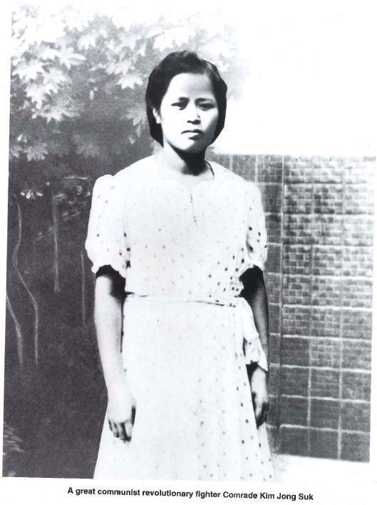 V r. 1932 ztratila soudružka Kim Čong Suk matku a švagrovou, zabité Japonci. V tom roce vstoupila do Komunistického svazu mládeže Koreje (KSMK). Byla první jeho ženskou členkou ve vsi Fujanu. V listopadu odešla do fujanské partyzánské zóny, kde pracovala jako členka výboru KSMK v 8. okrsku a vedoucí dětských oddílů. V těch dnech byl zabit japonskými imperialisty její poslední bratr Kim Ki Song.