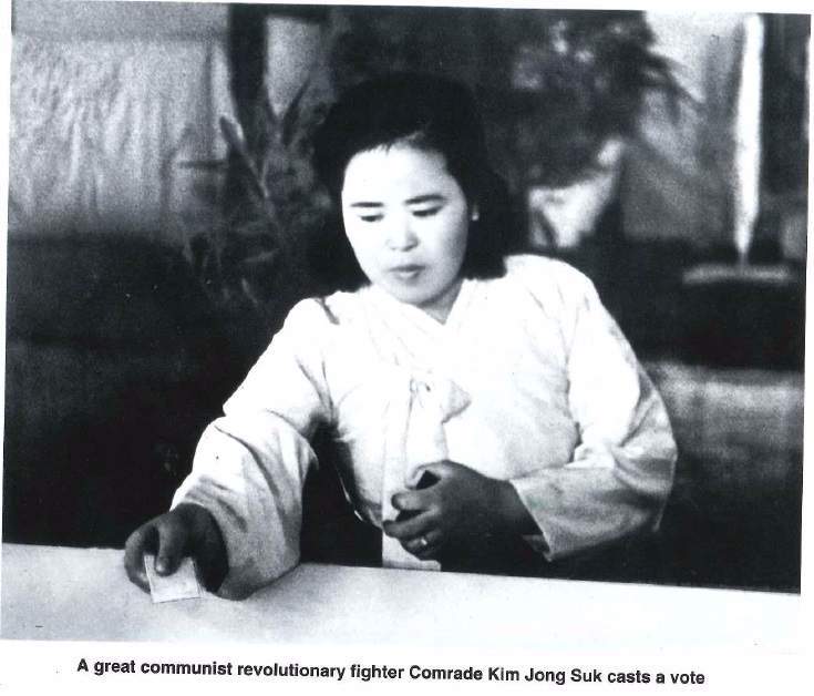 Dle knihy „Kim Čong Suk, matka Koreje“, Korea pictorial, Pchjongjang, čučche 86 (1997)
