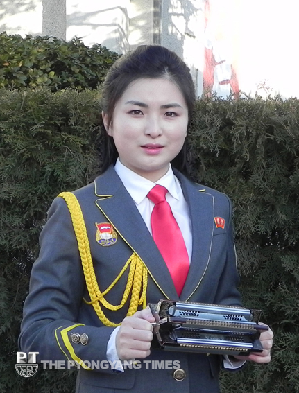 „Naše agitační brigáda zahrnuje mnoho zkušených a věhlasných hudebníků a hudebnic, sólo na harmoniky soudružky Kimové je však nedílnou součást našich vystoupení,“ uvádí vedoucí brigády Kim Tong Uk.