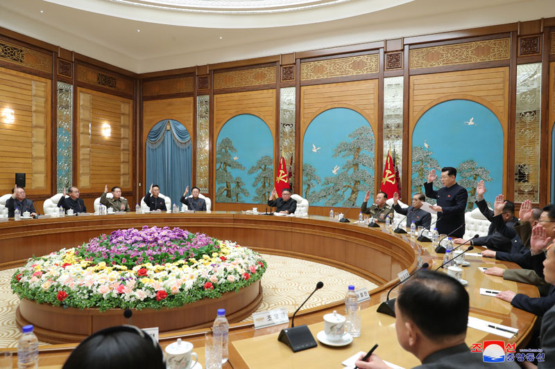 Přítomni byli členové prezídia politbyra ÚV KSP a členové a kandidáti členství politbyra ÚV KSP. Pod vedením váženého nejvyššího vůdce soudruha Kim Čong Una předsedal zasedání místopředseda Ústředního výboru KSP Kim Če Rjong.