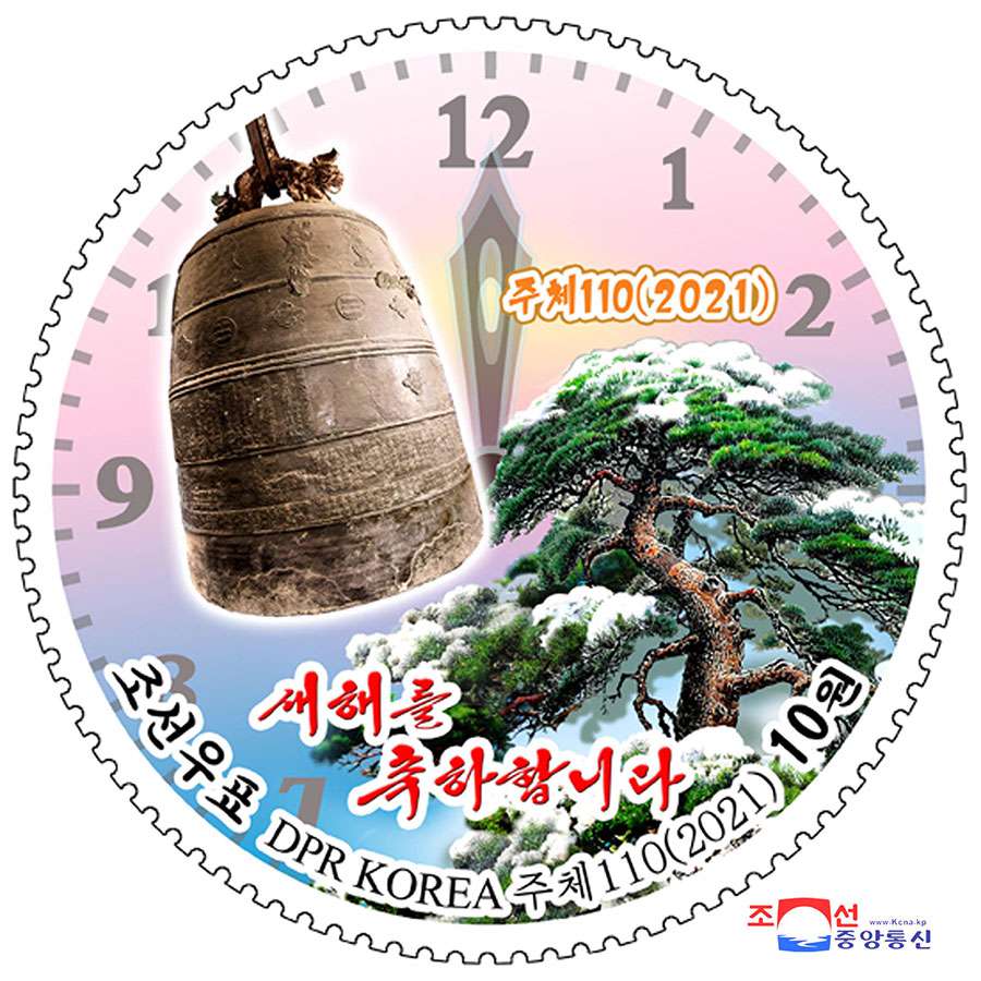 U příležitosti nadějného nového roku čučche 110 (2021) vydal Státní známkový výbor známku v podobě kulatých hodin s nápisy „čučche 110 (2021)“ a „šťastný nový rok“ a vyobrazením národního stromu naší země – borovice – a Pchjongjangského zvonu, slavné historické památky Pchjongjangu.