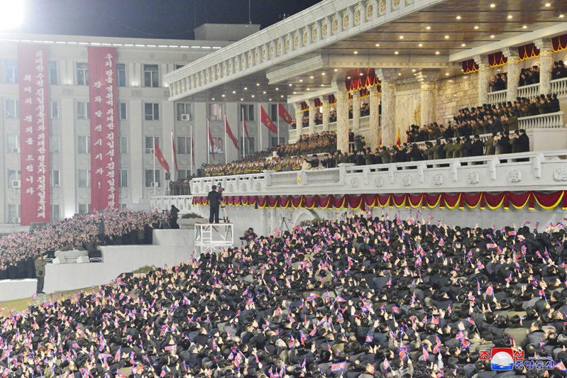 Náměstí bylo naplněno vysokým revolučním nadšením všech účastníků odhodlaných vždy kráčet jedinou cestou socialismu našeho stylu s velkou národní hrdostí, že vedou revoluci pod vedením soudruha Kim Čong Una, a s důvěrou a optimismem ohledně skvělé budoucnosti.