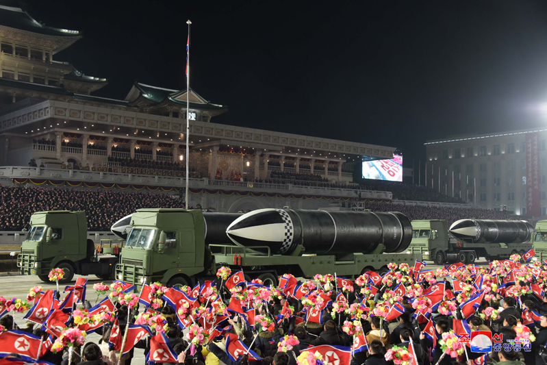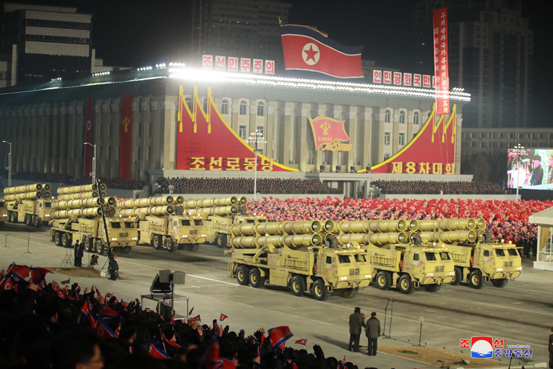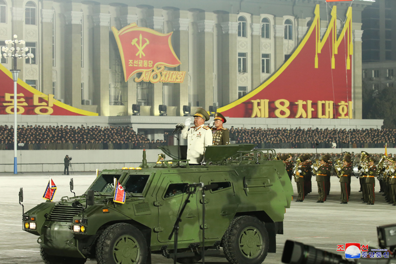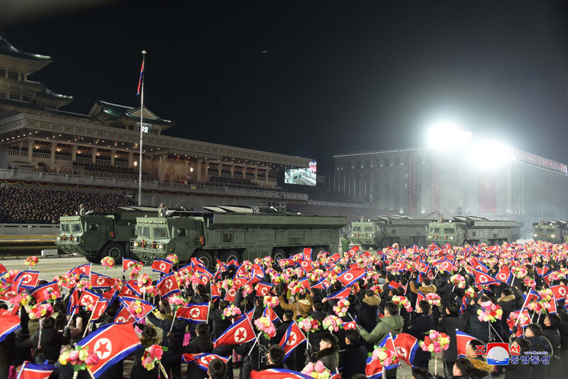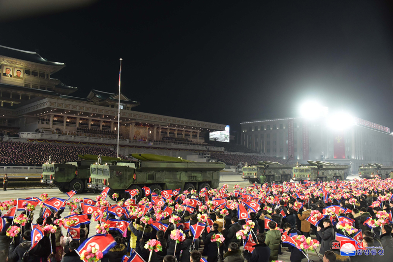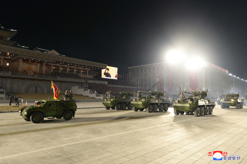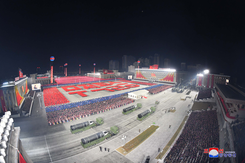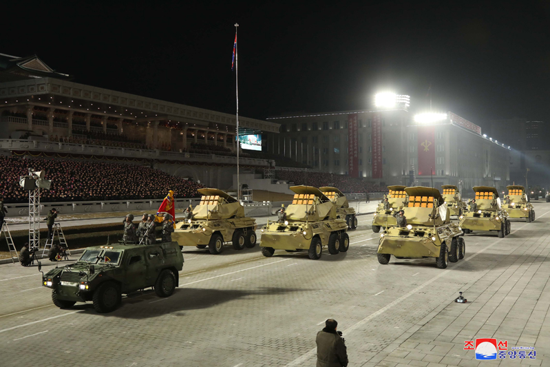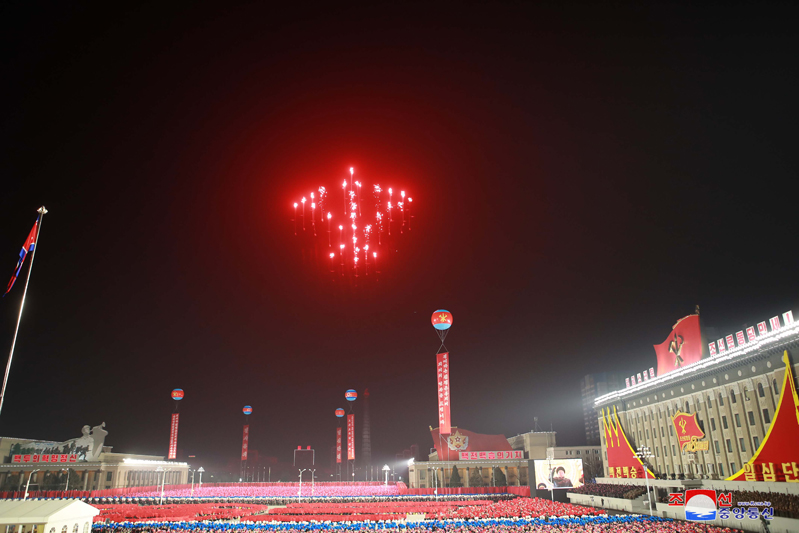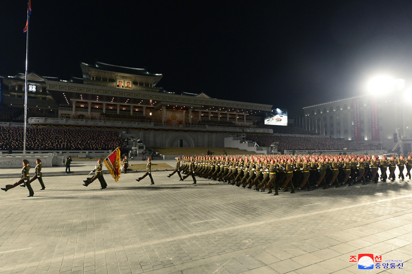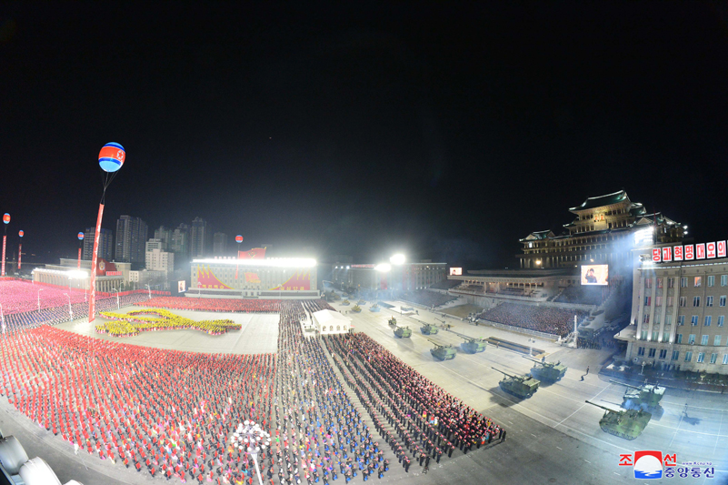 Pchjongjang, 15. ledna čučche 110 (2021) (KCNA) – Večer 14. ledna se na Kim Ir Senově náměstí v Pchjongjangu konala vojenská přehlídka na počest 8. sjezdu Korejské strany práce.