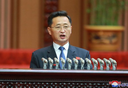 Úvodní slovo přednesl předseda prezídia Nejvyššího lidového shromáždění soudruh Čche Rjong He.
