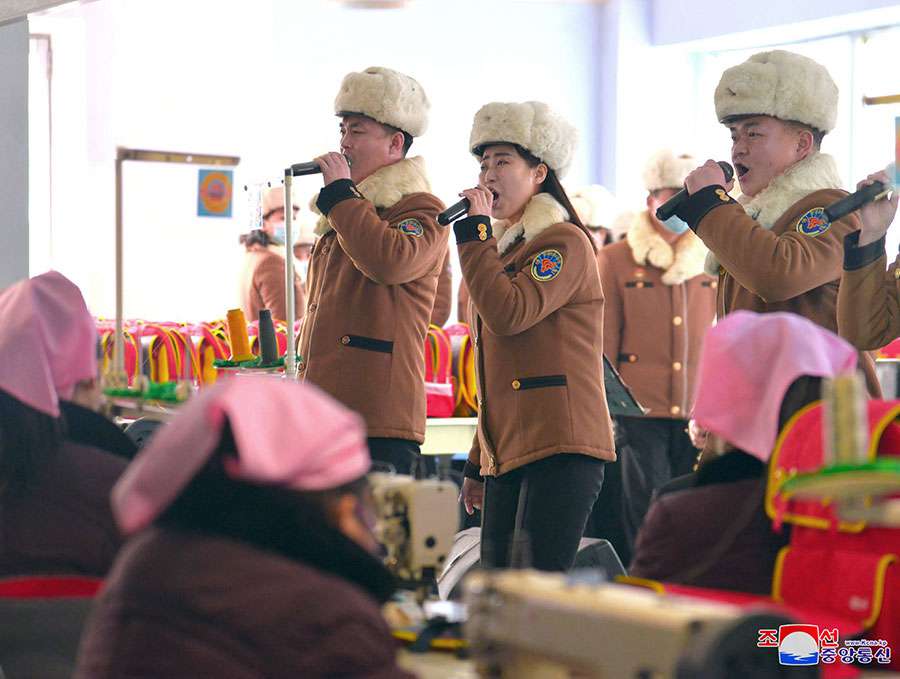 Pchjongjang 7. února čučche 110 (2021) (KCNA) – Tvůrci a umělečtí pracovníci Ústřední umělecké agitační brigády mládeže na pracovištích mocně inspirují a pozvedají masy ke splnění závěrů 8. sjezdu strany.