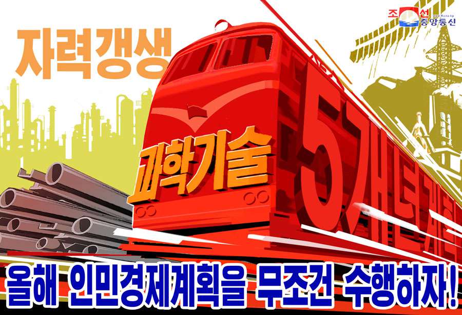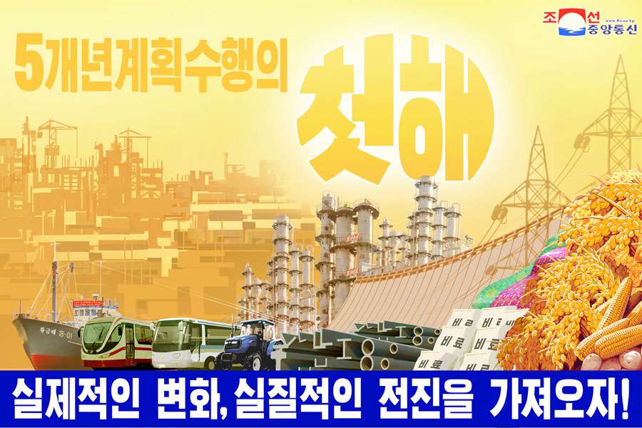 Je nutné odvážně překonat současné výzvy a obtíže silou soběstačnosti, vědy a techniky a jistě dosáhnout cílů prvního roku nového pětiletého plánu – touto myšlenkou jsou proniknuty plakáty „Důsledně plňme úkoly prvního roku pětiletého plánu stanoveného 8. sjezdem strany!“ a „Plán národního hospodářství na tento rok jistě splníme!“
