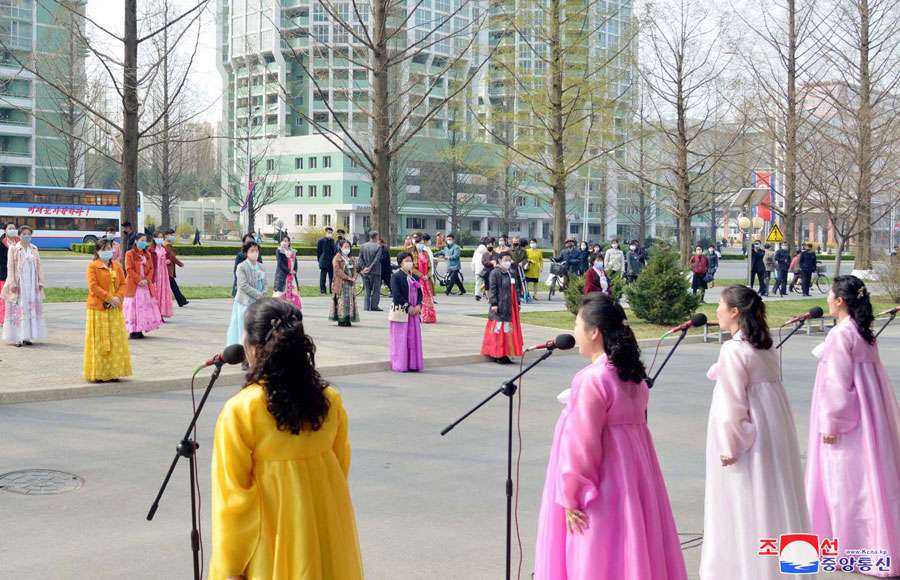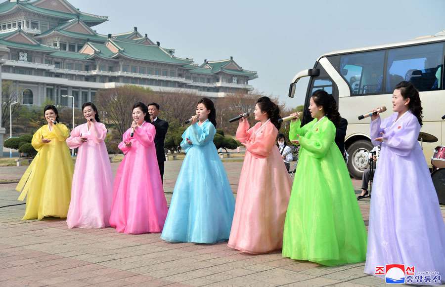 Ústřední umělecké agitační brigády, operativní umělecké agitační brigády a umělecké skupiny v Pchjongjangu pořádaly představení pod širým nebem v různých částech města. Slavnostní koncerty a představení se konaly také v provinciích Severní a Jižní Pchjongan, Jižní Hwanghe, Čagang, Kangwon, Jižní Hamgjong a dalších.