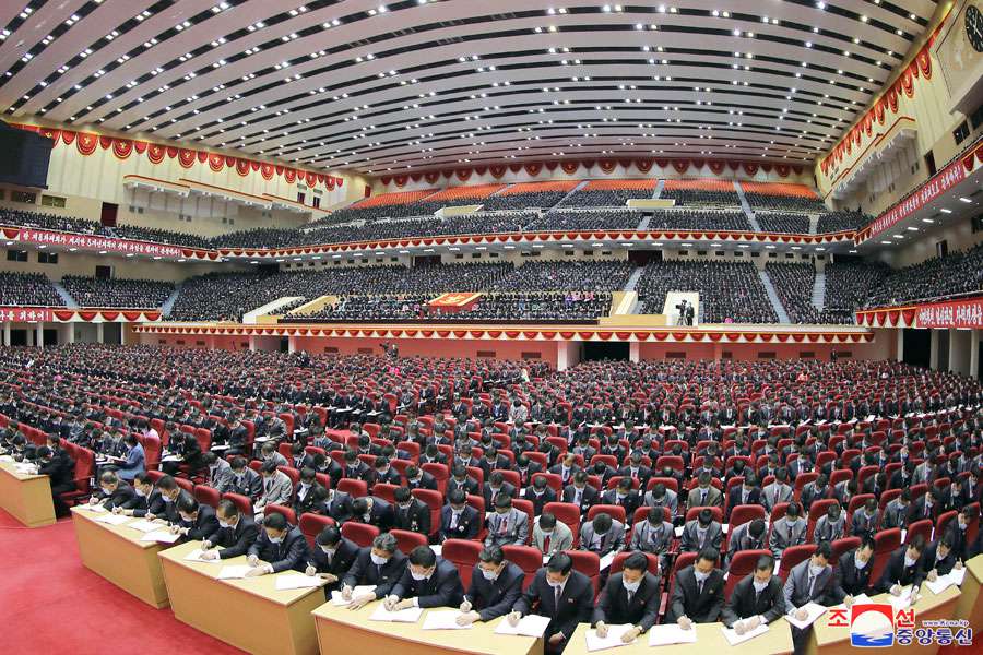 Pchjongjang 14. dubna čučche 110 (2021) (KCNA) – 13. dubna byl generální tajemník Korejské strany práce vážený soudruh Kim Čong Un na paměť vyfotografován s účastníky 6. konference tajemníků buněk Korejské strany práce.