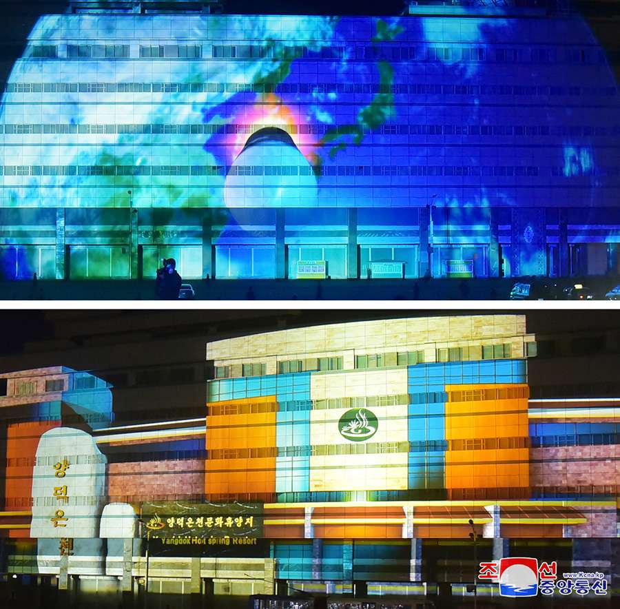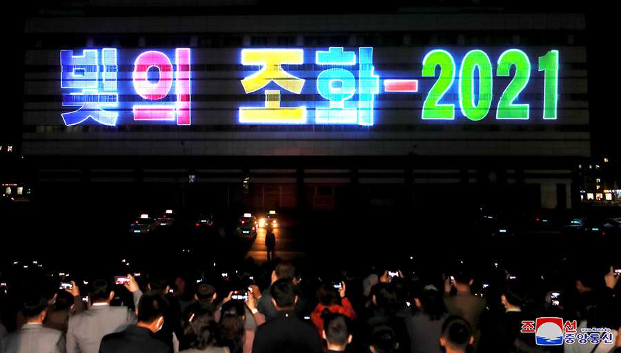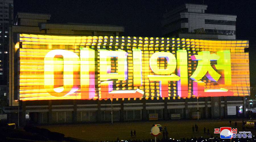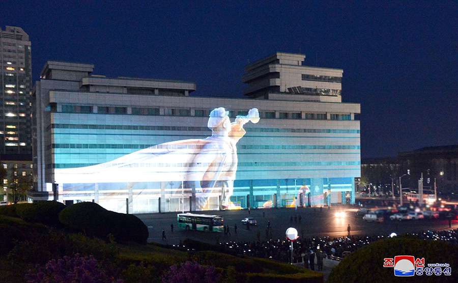 Pchjongjang 20. dubna čučche 110 (2021) (KCNA) – Od 18. dubna se v hlavním městě Pchjongjangu koná světelný festival na počest Dne slunce „Kouzelné paprsky světla – 2021“.