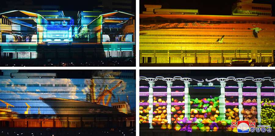 Světelný festival představil neustále se měnící velké obrazy ukazující současnou éru, kdy je den za dnem hlasitěji slyšet smích a písně štěstí lidu v náruči váženého soudruha Kim Čong Una, zajišťujícího pokračování dějin principu „lidové masy nade vše“ a světlou budoucnost.